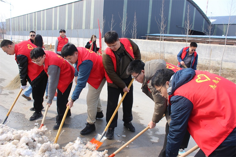 下午,10余名志愿者身著統(tǒng)一服裝,手持鐵鍬、掃帚等工具,對(duì)工業(yè)區(qū)園區(qū)內(nèi)的垃圾和積雪進(jìn)行集中清掃,以實(shí)際行動(dòng)保障道路整潔、暢通,為過往司乘人員及周邊群眾安全出行保駕護(hù)航。