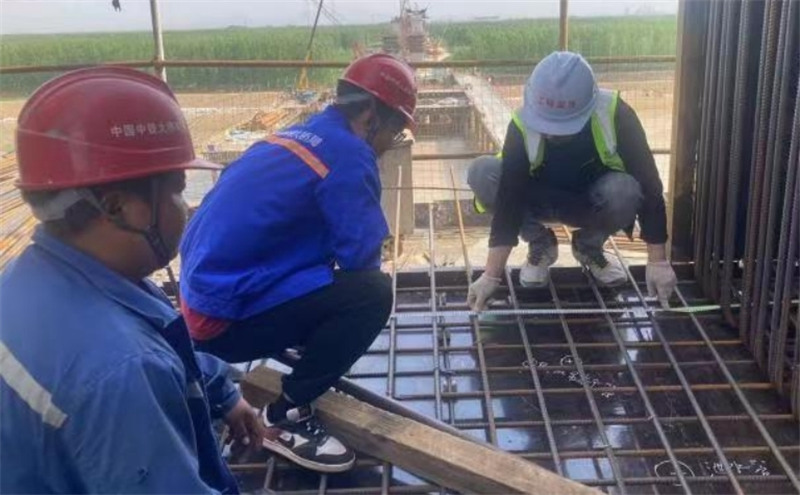 濱州樂安黃河公路大橋及接線工程主橋19#墩 0#塊鋼筋綁扎現(xiàn)場,監(jiān)理人員正巡視檢查預應力管道錨墊板位置、鋼筋綁扎位置。監(jiān)理人員積極響應“大干300天,奉獻在樂安” 勞動競賽暨黨建共建活動號召,秉持“嚴格監(jiān)理、優(yōu)質(zhì)服務,科學公正、廉潔自律”工作理念,堅守安全、質(zhì)量、廉政底線,不斷提升精細化管理水平,為項目建設保駕護航。